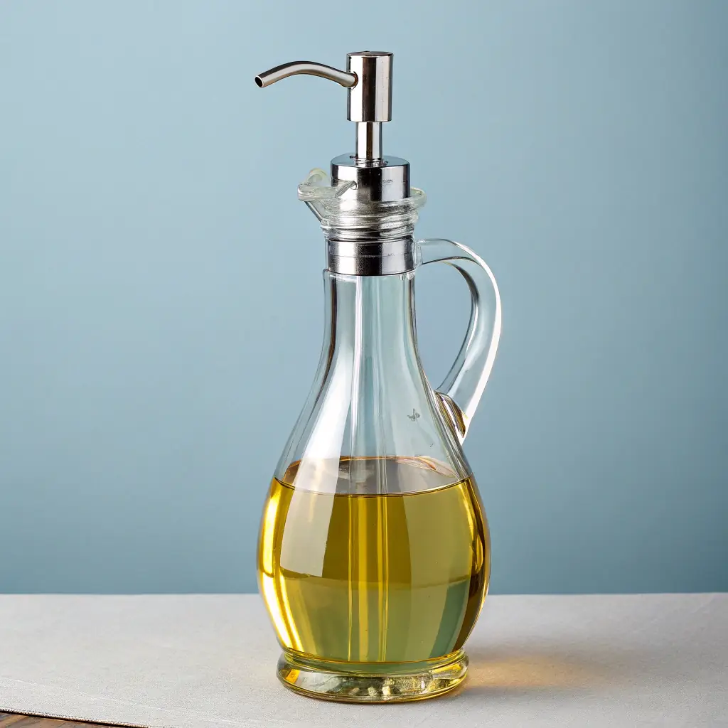 Dieser stilvolle Olivenöl-Spender ist für einfaches Ausgießen und präzise Kontrolle konzipiert. Hergestellt aus hochwertigem Glas mit einem eleganten Edelstahltülle, verleiht er jeder Küche oder jedem Esstisch einen Hauch von Raffinesse. Sein ergonomisches Design sorgt für einen bequemen Griff und macht ihn perfekt für den täglichen Gebrauch. Ideal zum Servieren von Olivenöl auf raffinierte Weise, während es frisch und geschmackvoll bleibt.
